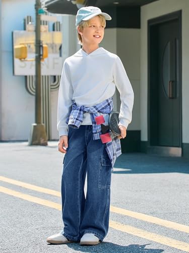 Haloumoning Boys Cargo Jeans Kids Baggy Elastic Waist Wide Leg Denim Pants with Pockets 5-14 Years 4