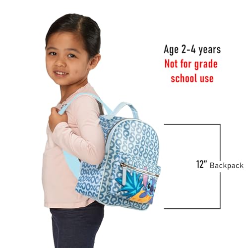 • This Lilo and Stitch mini backpack set includes a 12” backpack with adjustable shoulder straps, zip closure compartments, front pocket, and top loop="loop" for hanging featuring cute Stitch artwork.