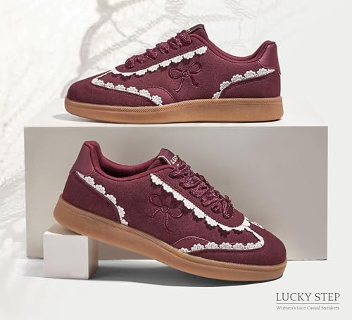 sizzling ! LUCKY STEP Women’s Lace Detail Casual Sneakers Organza Ribbon Lace-Up Fashion Vintage Gum Sole Trendy Cute Shoes