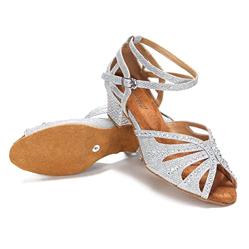 Dance Shoes for Women Low Heel Ballroom Dance Shoes Salsa Latin Practice Dancing Shoes Cuban Heels 1.5 inch 6