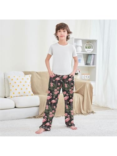 Flamingos Flowers Boys Pants for Kids Jogger Pants with Pockets S 7