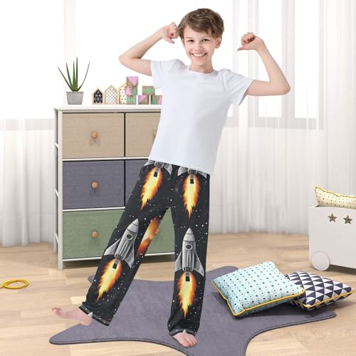 sizzling ! Galaxy Nebula Rocket Boys Long Pants silky Trousers Elastic Waist Kids Lounge Bottoms with Pockets S-XL