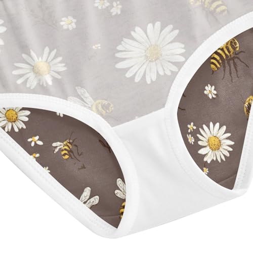 Wusikd Bees Daisies Brown Girls' Underwear Cotton White Flowers Girls Briefs supple Toddler Underwear 2T