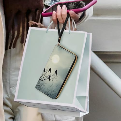 Women's Black Crow Raven Bird Art PU Leather Wallet, Large Capacity, Credit Card Holder, Coin Pocket, Ideal for Everyday