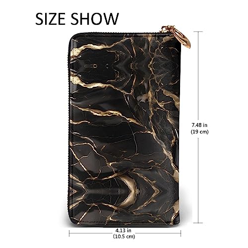 Leather Wallet 7.48 x 4.13 in - Stylish and Durable Wallet for Women with Multiple Compartments and Zipper Design Black Gold Marble Prints 1