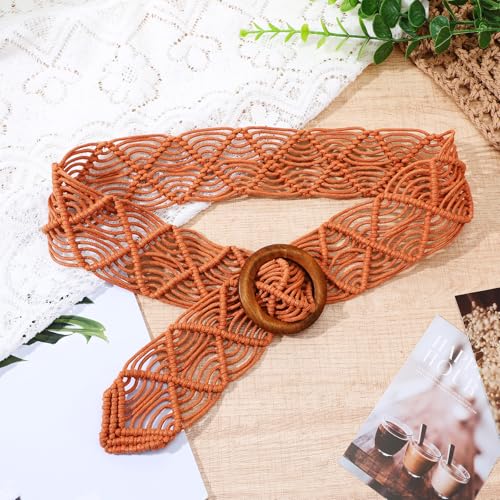 • Material & Durability: The boho belt is crafted from a premium blend of cotton, linen, and wood, ensuring a sturdy and long-lasting accessory. This brown belt for women is designed to withstand daily wear without losing its color or shape