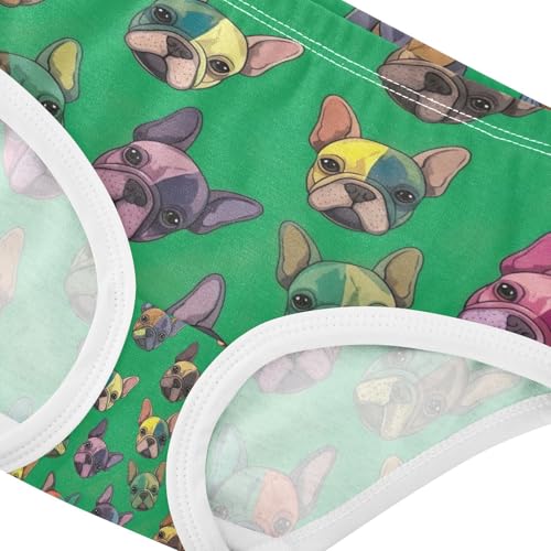 Toddler Panties, Cute Dogs Vibrant Green Cotton Girls Underwear, 2T–8 Years