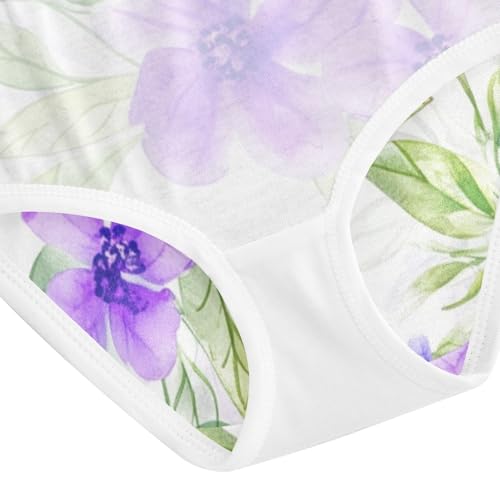 Girls Underwear Toddler 2t Cotton Panties Little Girl Fancy Briefs Undies Kids Watercolor Purple Flowers White 4