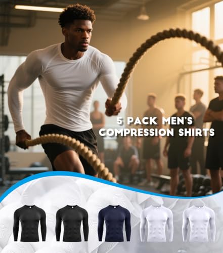 sizzling ! 5 Pack Men's Compression Shirts Long Sleeve Undershirts rapid Dry Workout Baselayer Rash Guard Fitness Top