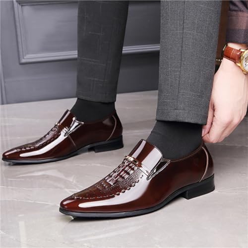 Men Wedding Tuxedo Shoes Crocodile Printed Formal Oxfords Shoes Pointed Toe Slip-on Patent Leather Dress Shoes 6