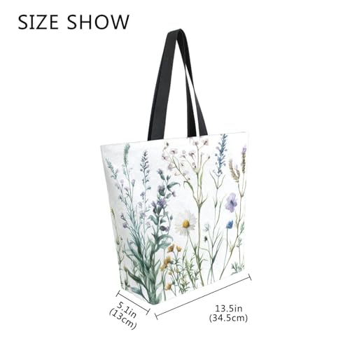 Why Choose Extra Large Shoulder Tote Bag for Beach Travel Weekender Gym Watercolor Wildflowers Green Leaves Plants Reusable Grocery Canvas Shopping Bag?