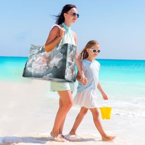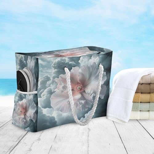 sizzling ! Cloud and Flower (1) Beach Bag & Travel Tote Bag Large Sandproof with Zipper Closure, Wet Pouch for Swim Gym Travel, Lightweight Foldable Outdoor Bag