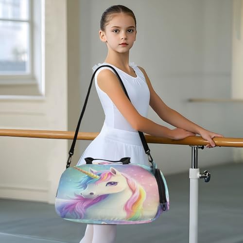 Sparkling Unicorn Colorful Kids Travel Duffel Bag for Boys Girls Overnight Weekend Tote Bag with Shoes Compartment for Trip Beach Gym 6