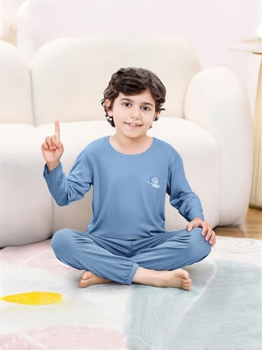 Umeyda Kids Boys Soft Modal Pajama Set Cozy Long Sleeve Sleepwear Nightwear 2 Pcs Pj Set, 4-14 Years 5
