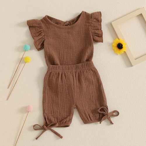 Toddler Girl Summer Outfit Solid Color Short Sleeve Round Neck Tops Elastic Waist Tie-up Shorts Newborn Baby Clothes