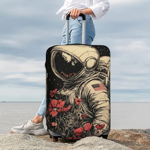 Astronaut And Flowers Elastic Travel Luggage Covers Dustproof Scratch-Resistant Suitcase Protector Fit 22-24 Inch