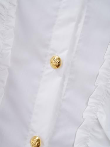 ACSUSS Girls Round Neck White Blouse Long Sleeve Button Down Shirts Tops for Kids Cute Ruffled School Uniform 1