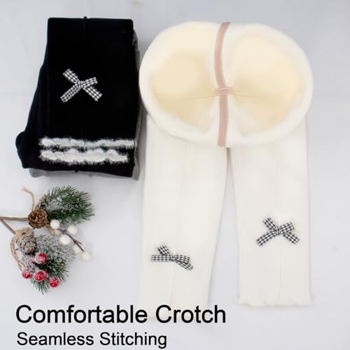 Fabric type: 95% Cotton, 5% SpandexOrigin: ImportedGood Comfort: Toddler tights made from 95% cotton and 5% spandex, offering a soft and cozy fit that keeps your little one comfortable all day.Appropriate Elasticity: These baby footless tights offer a comfy fit with just the right stretch, ensuring no tightness. Easy to put on and take off, perfect for everyday wear.Adorable Design: Our baby tights feature sewn bow knot and furry snowball details, adding a cute touch to your child's outfit. Machine-sewn for durability, ensuring they wonβt easily fall off.Versatile Style: These fleece lined pants are cute and vintage, pairing perfectly with winter dresses, tops, sweaters, skirts, dance shoes, school uniforms, and more. An ideal gift for birthdays, holidays, Thanksgiving, Easter, Christmas, and other special occasions.Affordable Set: 1 pack of girls' footless tights in white, black, or grey. Available in sizes 2-3T (85-95 cm/33.46-37.40 inches), 3-4T (95-105 cm/37.40-41.34 inches), and 4-5T (105-115 cm/41.34-45.28 inches). For taller kids, choose one size up. Perfect for everyday use. first-class materials and excellent craftsmanship ensure long-lasting durability.