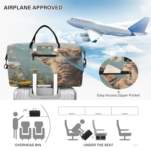 Cat Playing Dandelion Large Travel Duffle Bag Weekender Overnight Bags Gym Yoga Bag for Women Men with Toiletry Bag
