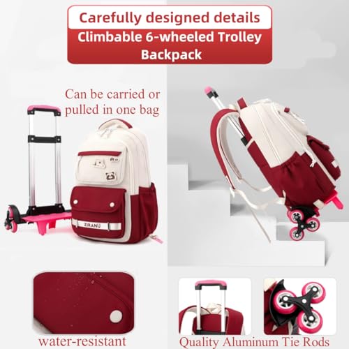 EKUIZAI Trolley Backpack for Girls Middle Kids School Bags with Wheels Rolling School Bags for Teen Girls