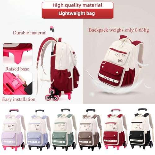 Simple and classic color scheme: this girls trolley backpack with classic and simple color scheme is very fresh and everyday, he can match your clothes well and also suitable for a variety of places.High-quality trolley backpack: trolley backpack using high-quality aluminum material is not easy to bend, backpack fabric using high-density waterproof nylon, rainy days can also be easy to travel, there are 6-wheeled trolley backpacks to choose from, the wheel trolley can be climbed, the daily travel more easily.Large-capacity rolling school bag: the backpack has multiple front pockets and pockets, built-in large-capacity main pocket and computer compartment straps, size 32(L)*18(W)*46(H)cm/12.6(L)*7.1(W)*18.1(H)Inch, the capacity of the backpack is about 26 liters, which can well meet your daily needs.Comfortable to use:This girls color blocking trolley backpack is perfect for elementary middle school girls practical, detachable design, can be carried and pulled, thickened shoulder straps as well as handles, can effectively protect the child's spine, lightweight backpack.If you need a perfect gift, you may want to consider this cute girl trolley backpack, perfect for middle school, elementary school girls, you can give it to your kids or friends on Christmas, birthday, start of school and other festivals, it will surely satisfy you! Perfect for everyday use. High quality materials and excellent craftsmanship ensure long-lasting durability.