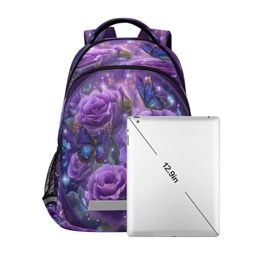 More information about Dussdil Purple Rose Butterfly (2) Kids Backpack School Backpacks for Boys Girls, 16 Inch Casual Book Bag Daypack Back Pack Double Zipper Travel Bags