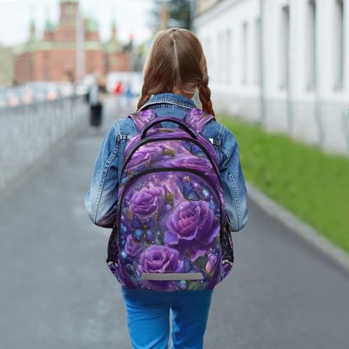 Dussdil Purple Rose Butterfly (2) Kids Backpack School Backpacks for Boys Girls, 16 Inch Casual Book Bag Daypack Back Pack Double Zipper Travel Bags 5
