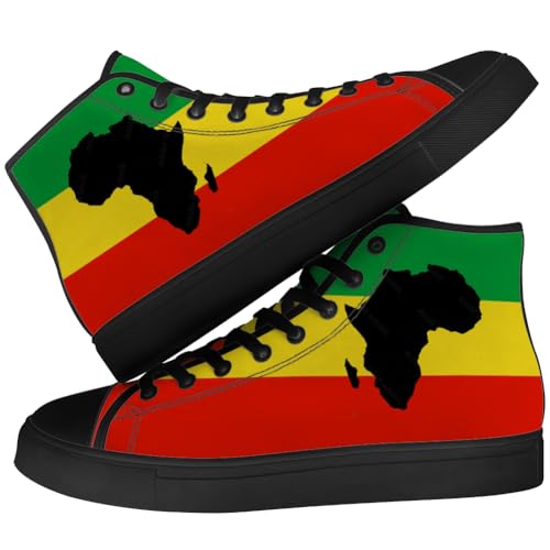 sizzling ! Rasta High Top Canvas Shoes for Men Women Reggae High Top Sneakers Lace Up Casual Shoes Gifts for Dad Mom