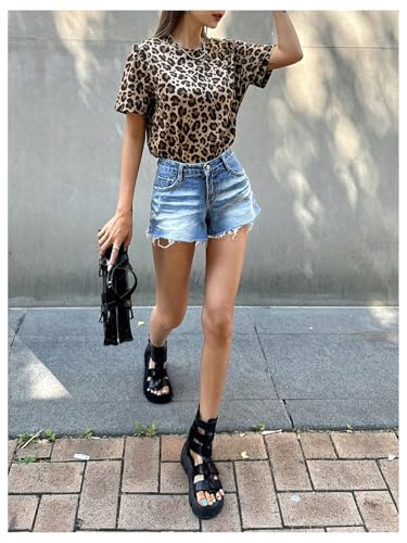 sizzling ! Women's Cheetah Print Top Round Neck Leopard Print Tops Short Sleeve Loose Y2k Summer T Shirt