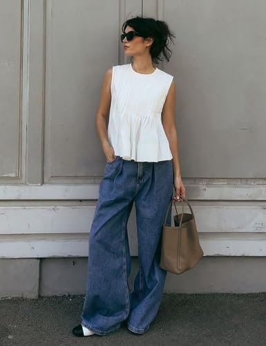 sizzling ! Yimoon Womens Peplum Tops Pleated Ruffle Tank Top Y2K Sleeveless Blouse Summer Flowy Babydoll Shirts