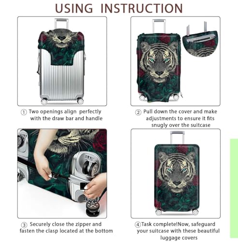 V-DECORPARKS Tiger's Face Luggage Cover - Tropical Roses Suitcase Covers For Luggage, Washable Durable Fade-Resistant Suitcase Cover, Luggage Cover Protector Fits 18-32 Inch Luggage, Series 02 5