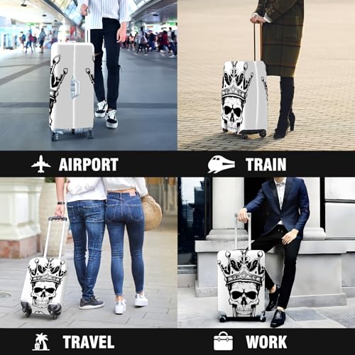 Travel Luggage Cover Suitcase Protector Scratch-Resistant Fit Not Included Suitcase Human Skull King In Crown Sketch Hand Drawn XL-30-32in