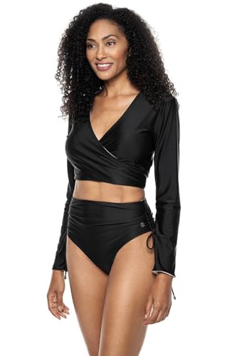 • FABRIC: Our Aqua Vesta fabric is smooth and silky to the touch with an elegant, liquid-like drape. This chlorine and saltwater resistant UPF 50+ fabric is lightweight, breathable and fast dry with a 4-way stretch that moves with you, making it ideal for activities in, on or around the water. Nylon/Spandex blend