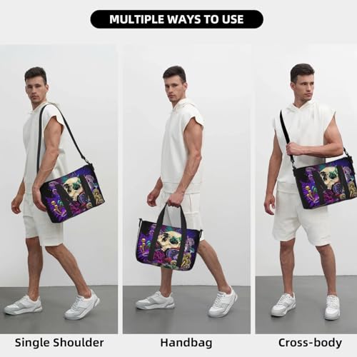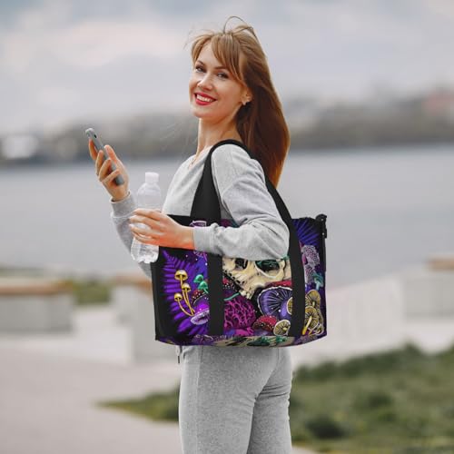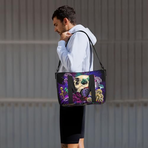 • Multi-Purpose Use: Designed for a variety of activities, this Mushrooms and Skull versatile bag is ideal for travel, weekend getaways, gym sessions, tennis, fishing, and more. It can function as a gym bag for men, a travel tote for women, or even as a women’s overnight bag