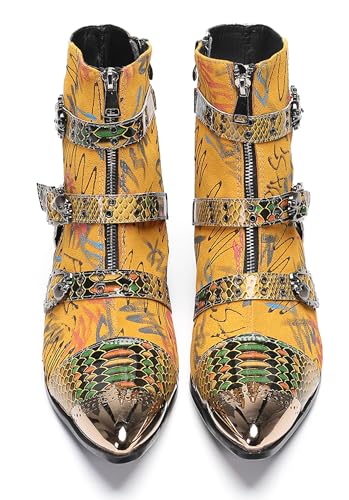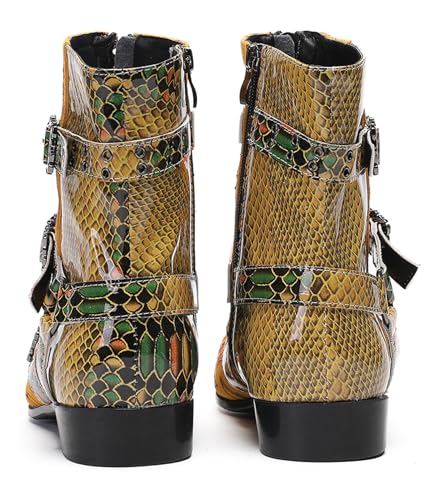 Santimon Men's Snake Print Cowboy Boots – Punk Rock Gothic Casual Western Boots with Metallic Toe, Buckle Strap,Skull Rivets & Side Zipper for Stage, Party & Bar 7