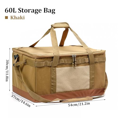 • 【Generous Capacity】: Holds up to 60L of gear, with dimensions of 54cmx37cmx30cm/21.26inchx14.57inchx11.81inch, ideal for camping stoves, cookware, tools, and more