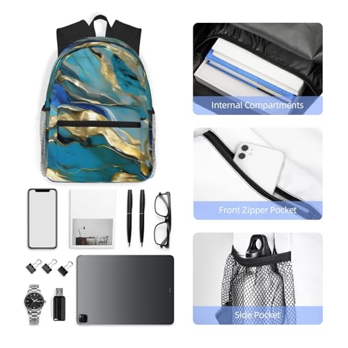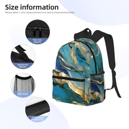 BREAUX Azurite Teal And Foil Gold Oil Marble Pattern Print Lightweight And Comfortable Duffel Bag, Casual Daypack, Multipurpose Backpack 7