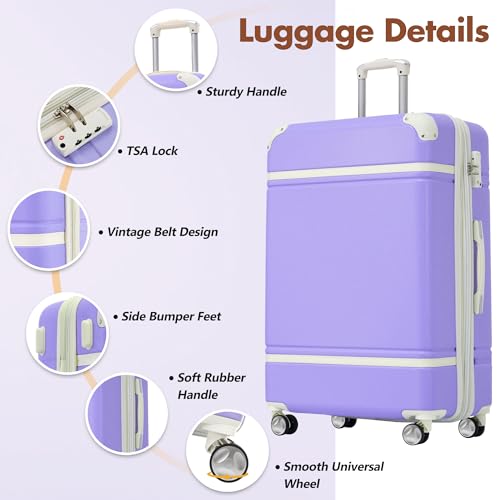 Why Choose Hardshell Luggage Sets With Bags, Lightweight Suitcase, Double Spinner Wheels, TSA Lock, Vintage Style, 24 Inches, Purple?