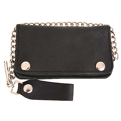 Milwaukee Leather MLW7883 Men's 6” Black Premium Leather silky Biker Wallet - Bi-Fold Anti-Theft Stainless Steel Chain - One Size