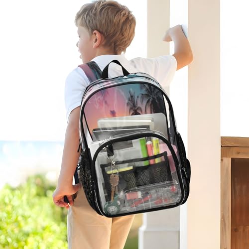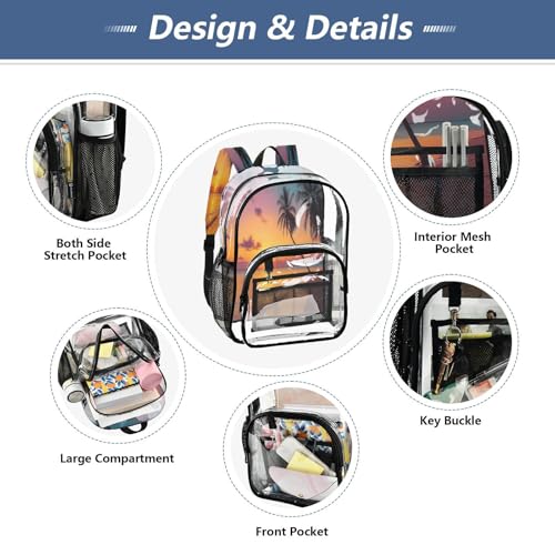 Tropical Beach Clear Backpack - Stadium Approved Large 15.7-inch Waterproof Transparent Bag for Sports, Concerts, Work, Travel#63 4
