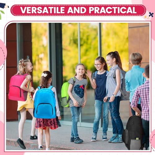 Jexine 72 Pcs Backpack Bulk 17 Inch Foldable Backpack 5 Assorted Colors Lightweight Back Pack for Outdoor Travel Zippered Book Bags 7