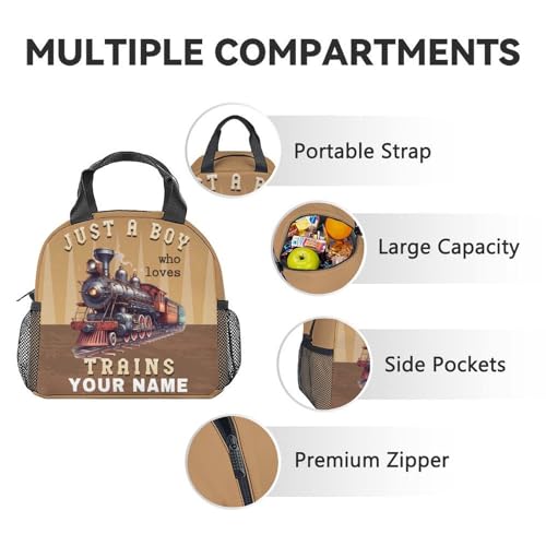 Custom School Backpack with Lunch Box Set for Kids, 3 in 1 Train Backpacks Matching Combo, Funny Brown Bookbag and Pencil Case Bundle 4