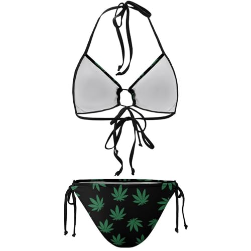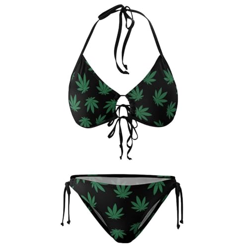 Why Choose Swimsuits Cannabis Leaf Marijuana Herb Weed Bikini Set with Bra and Strappy Triangle Briefs for Women?