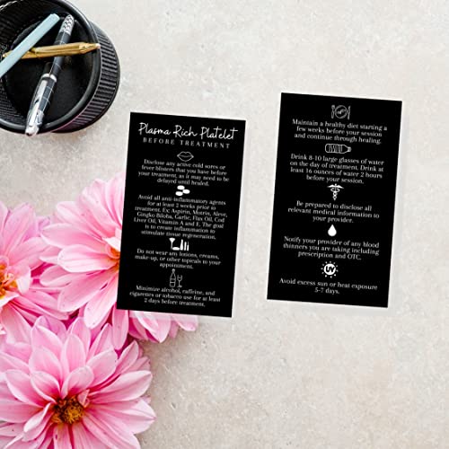 Why Choose PRP Platelet Rich Plasma Pre Treatment Care Instructions Card | 50 Pack | 2x3.5” inches Business Card | PRP Supplies | Black with White Icons Design?