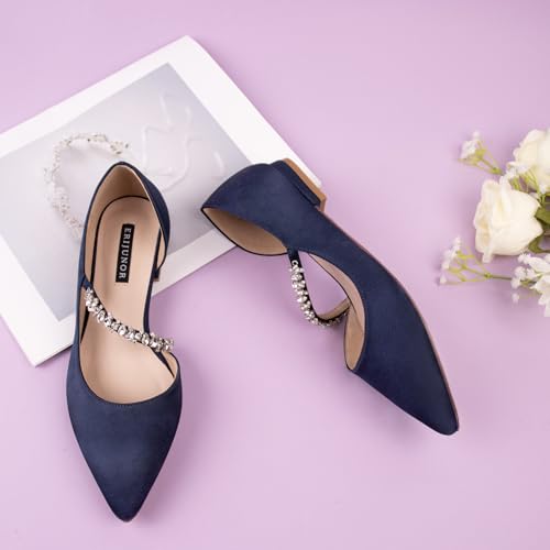 ERIJUNOR E0168F Women Comfortable Low Heel Pointy Toe Pumps Wedding Party Shoes 1