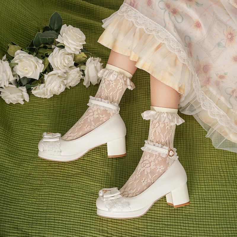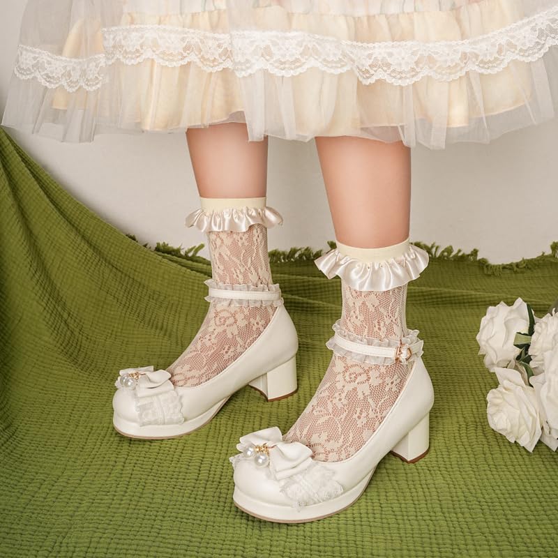 • Kawaii Shoes: Cute women mary jane shoes with lace and bows to make your outfits adorable