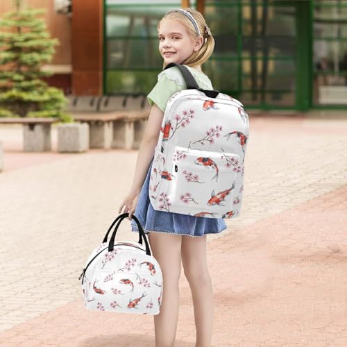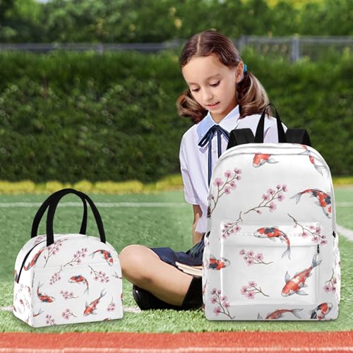 Kids Book Bags Waterproof Cooler Bag, Backpacks for Tweens, Teens, and Older Kids, Koi Fish Floralwhite 1