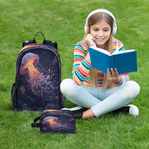 ALAZA Three Jellyfish Kids Backpack Elementary Girls Boys Bookbag Rucksack Primary School Bag Backpack Set with Lunch Bag 3