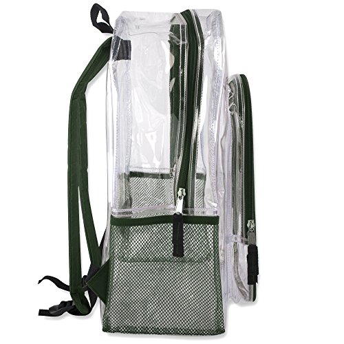 • GREEN CLEAR BACKPACK FOR SCHOOL: This clear backpack heavy duty green trim for boys & girls is also the ideal plastic backpack for travel, commuting to work, and getting through security almost anywhere