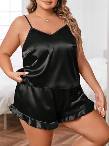 More information about SOLY HUX Women's Plus Size Silk Satin Pajama Set Cami Top and Ruffle Hem Shorts Lounge Sleepwear